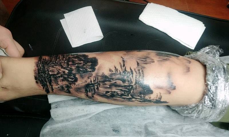 当前位置: 首页 >浙江省温州市纹身店-南唐刺青纹身图案>山水画纹身图片_水墨纹身图案