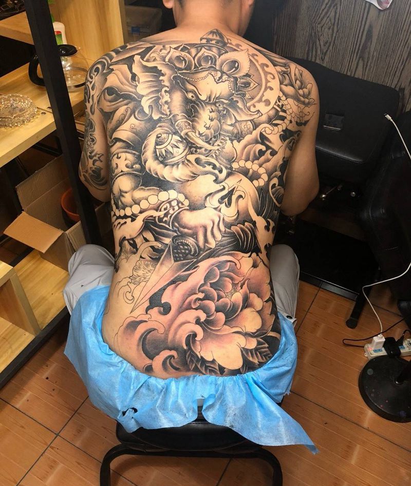 当前位置: 首页 >浙江省宁波市纹身店-玄机刺青纹身图案>满背象神纹身图片