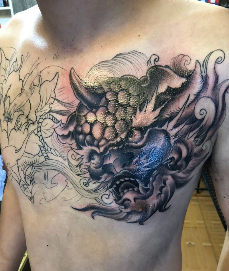 当前位置: 首页 >浙江省宁波市纹身店-玄机刺青纹身图案>唐狮花胸未完待续纹身图片