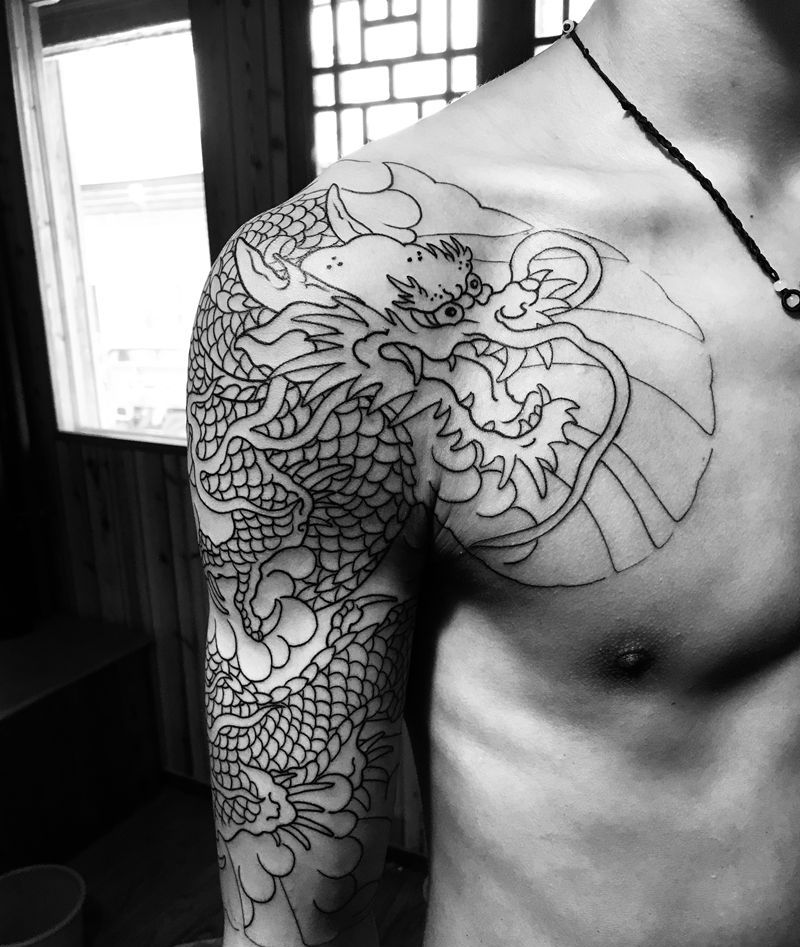 • T云龙九郎纹身图片_背部老传统云龙九郎纹身图案