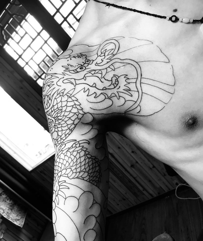 • T网红王老大花腿龙纹身图片_腿部新传统纹身图案