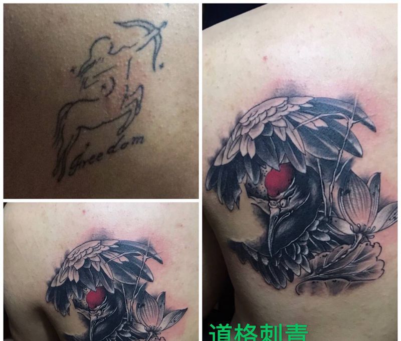 鹤纹身图片_背部新传统纹身图案