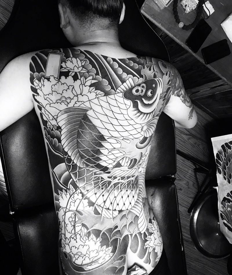 日式鲤鱼纹身图片_背部老传统纹身图案