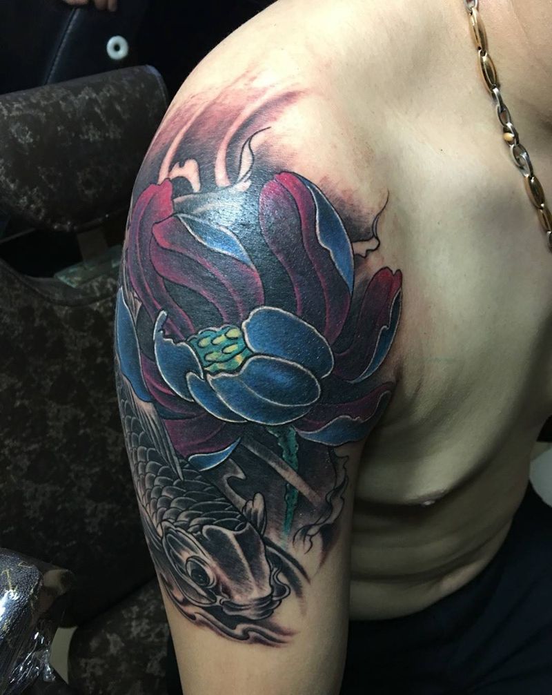 当前位置: 首页 >浙江省温州市纹身店-道格刺青纹身图案>鲤鱼遮盖作品纹身图片