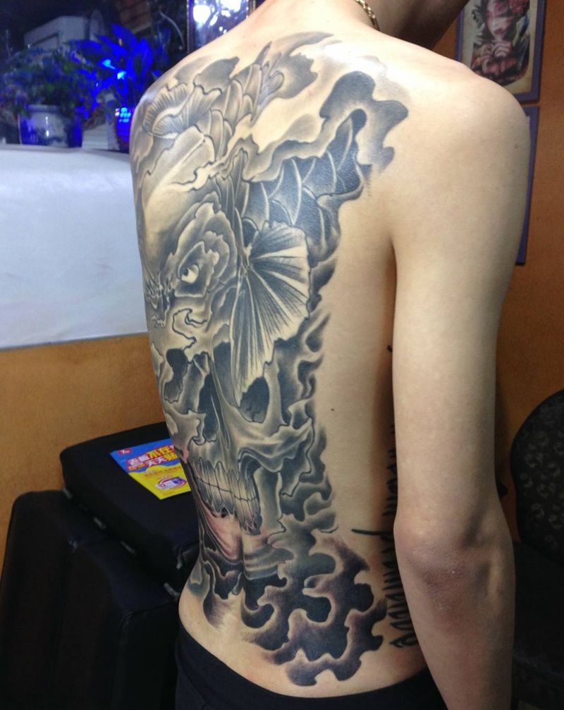 • 黑灰满背纹身图案