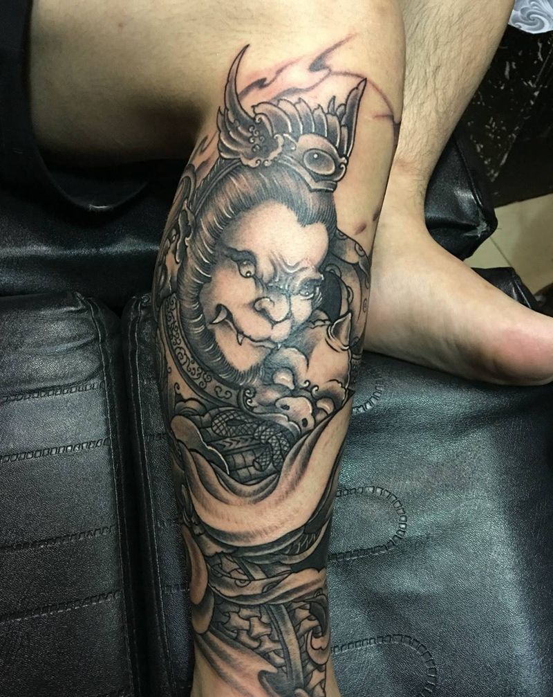 • T网红王老大花腿龙纹身图片_腿部新传统纹身图案