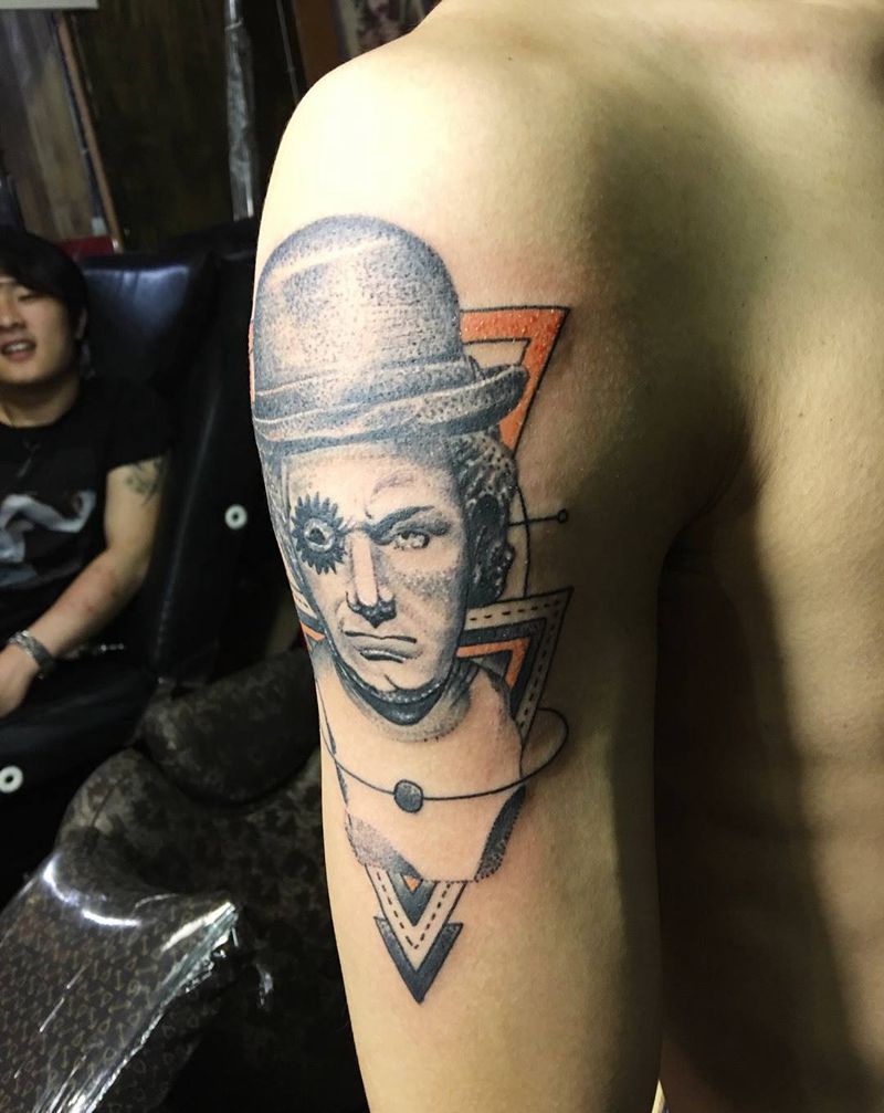 • T包小腿吹火男+阿多福纹身图片_腿部老传统新传统吹火男阿