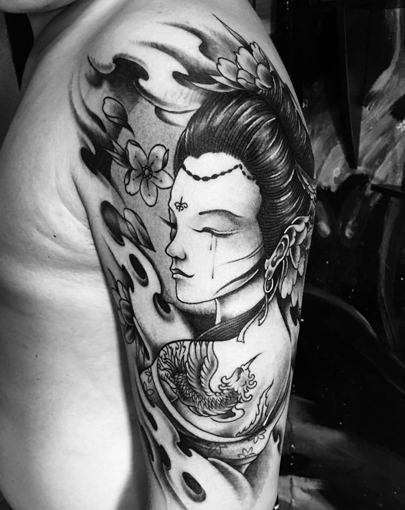 当前位置: 首页 >浙江省温州市纹身店-道格刺青纹身图案>艺妓纹身纹身图片