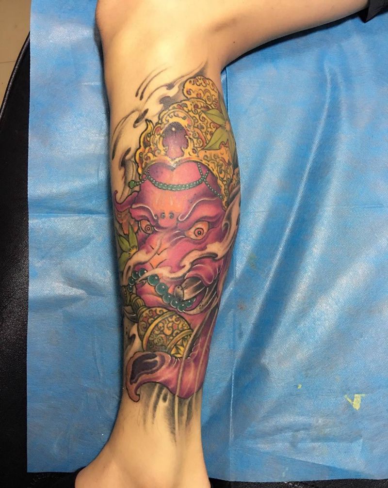 当前位置: 首页 >浙江省温州市纹身店-道格刺青纹身图案>象神小腿完成纹身图片