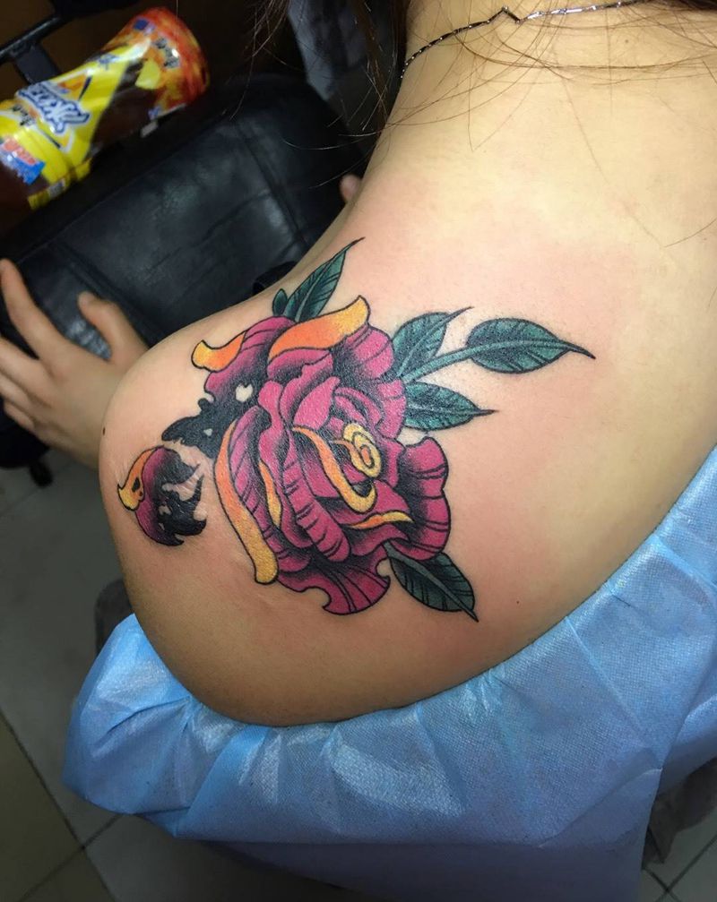 • 女性大花胸纹身_43张霸气漂亮的女性大花胸纹身图案作品