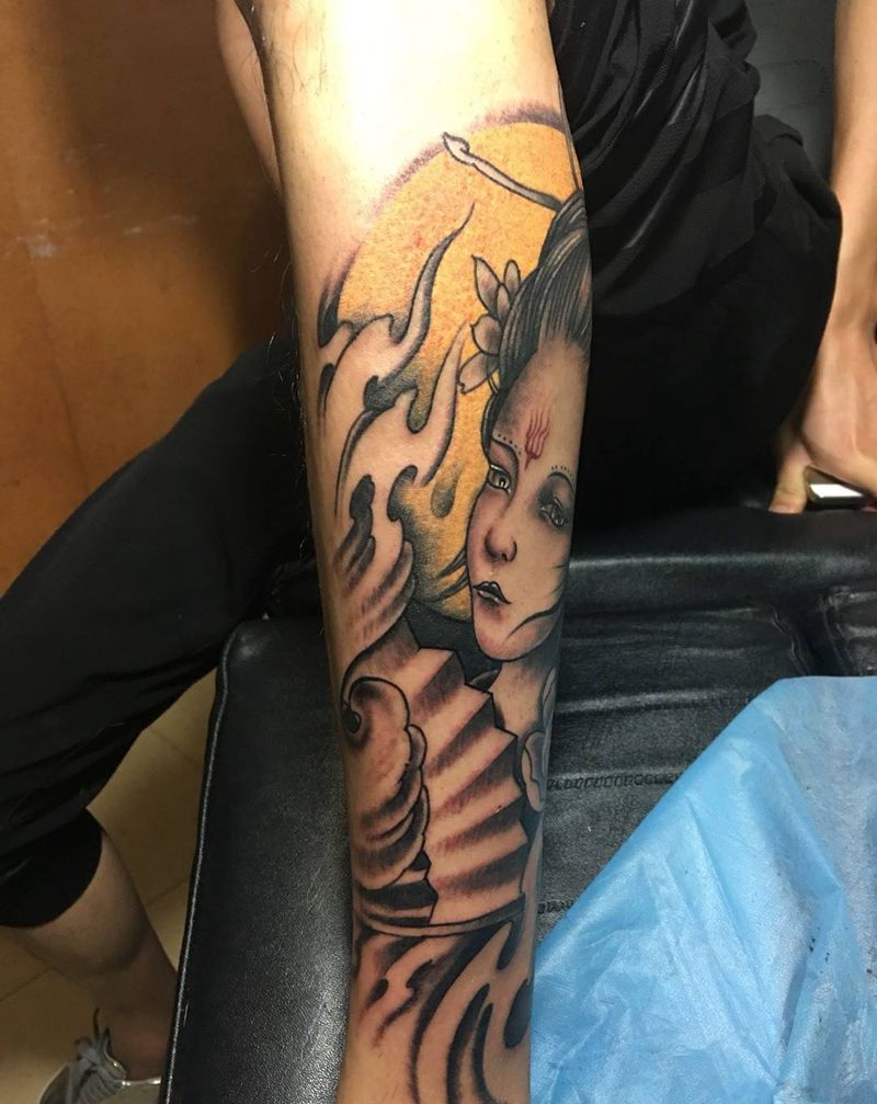 当前位置: 首页 >浙江省温州市纹身店-道格刺青纹身图案>艺妓小腿,纹身图片