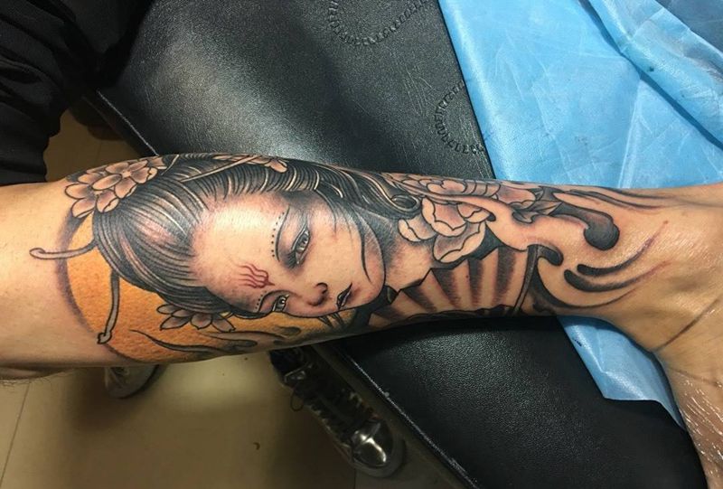 当前位置: 首页 >浙江省温州市纹身店-道格刺青纹身图案>艺妓小腿,纹身图片