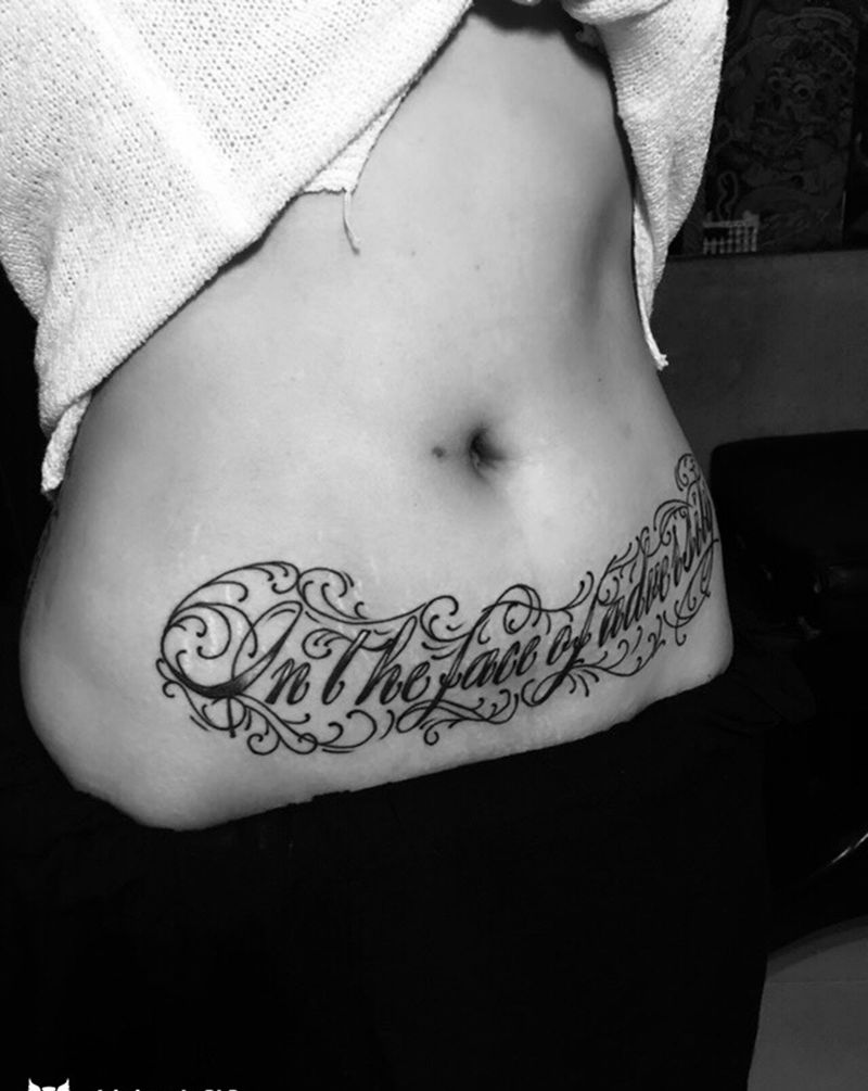 • T关于私处得爱!纹身图片_成品腹部清新字符图腾纹身图案