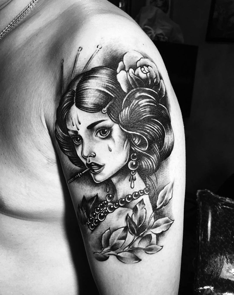 • 女性大花胸纹身_43张霸气漂亮的女性大花胸纹身图案作品