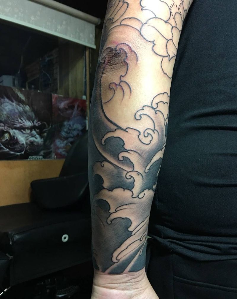 当前位置: 首页 >浙江省温州市纹身店-道格刺青纹身图案>传统花臂,还需要一次纹身图片