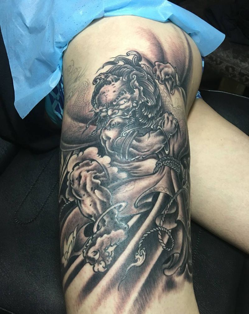 当前位置: 首页 >浙江省温州市纹身店-道格刺青纹身图案>风神完成,耗时5小时。纹身图片