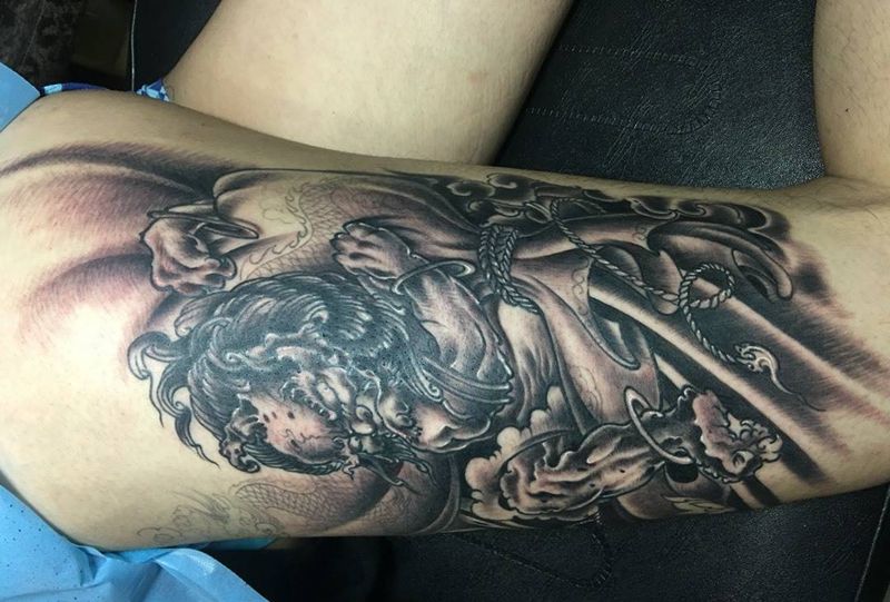 当前位置: 首页 >浙江省温州市纹身店-道格刺青纹身图案>风神完成,耗时5小时。纹身图片