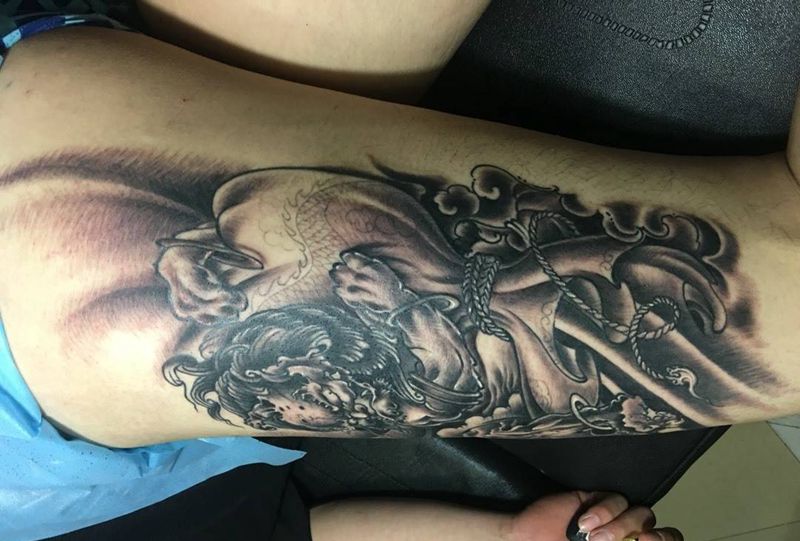 当前位置: 首页 >浙江省温州市纹身店-道格刺青纹身图案>风神完成,耗时5小时。纹身图片