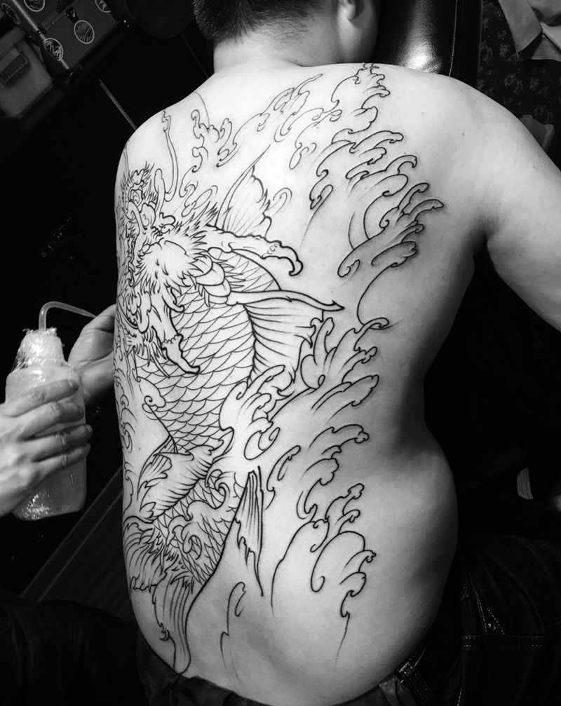 • T云龙九郎纹身图片_背部老传统云龙九郎纹身图案