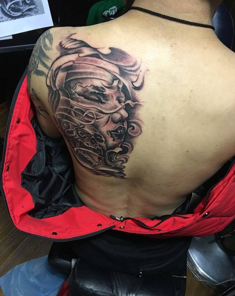 • 纹身吧推荐的披肩图腾半胛纹身图案作品展示