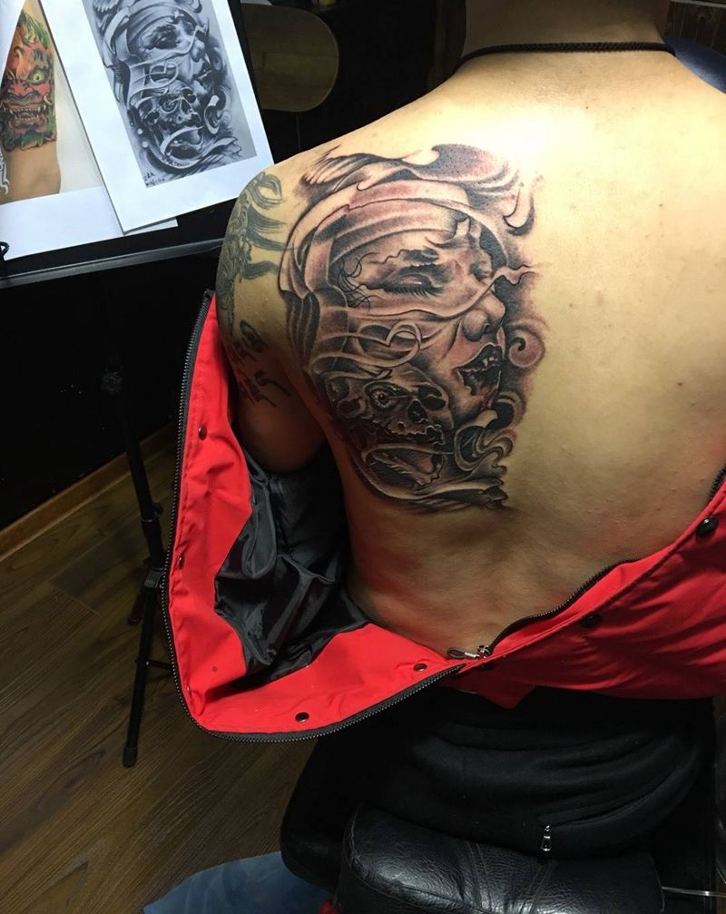 • 黑灰满背纹身图案