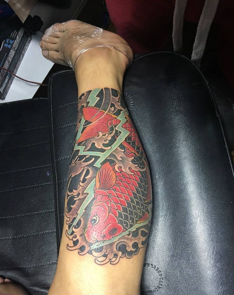 • T网红王老大花腿龙纹身图片_腿部新传统纹身图案