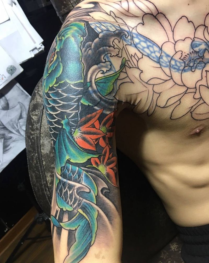 当前位置: 首页 >浙江省温州市纹身店-道格刺青纹身图案>鲤鱼遮盖纹身图片