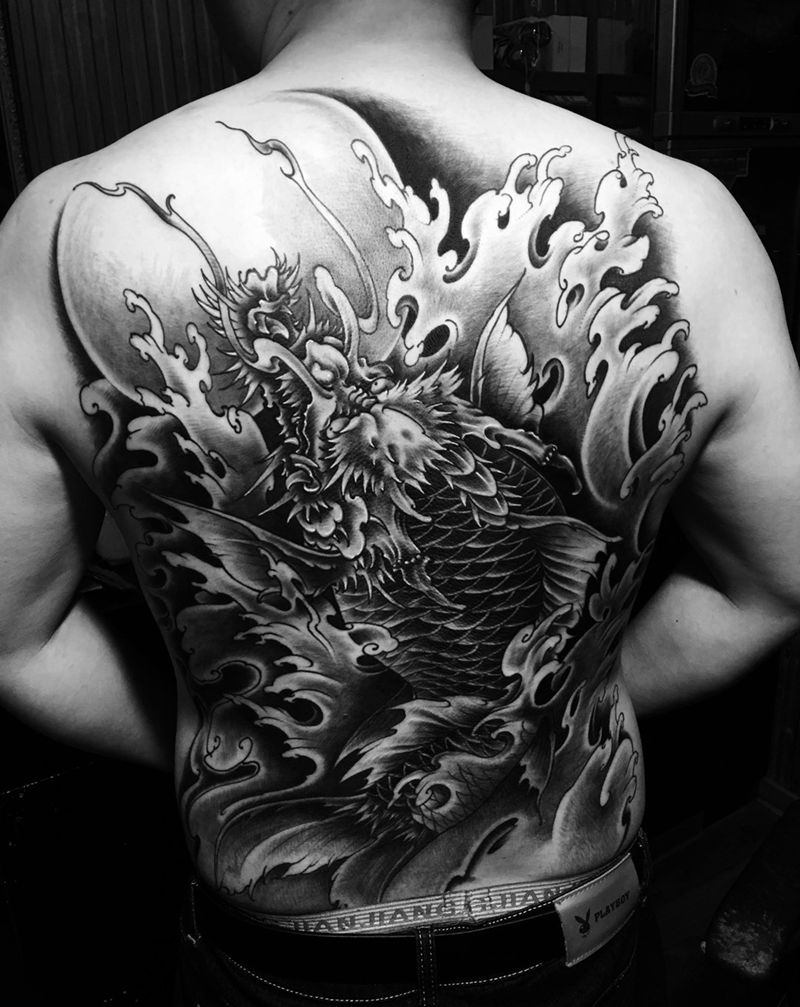 • T云龙九郎纹身图片_背部老传统云龙九郎纹身图案