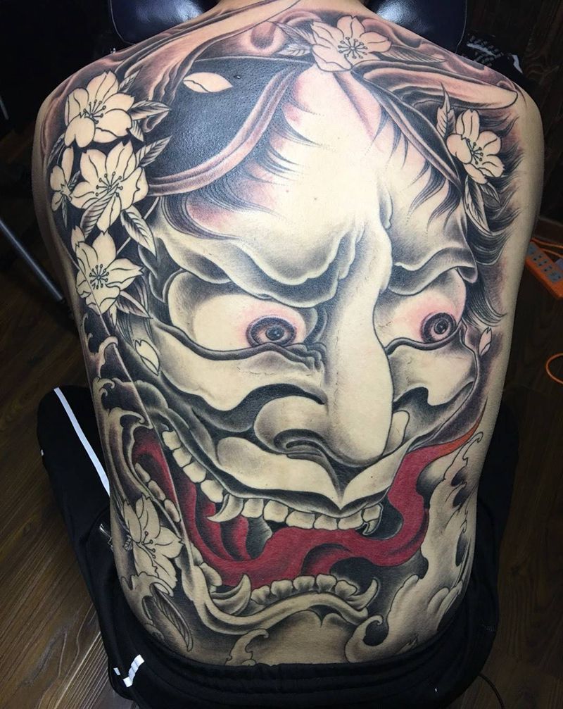 黑灰满背纹身图案