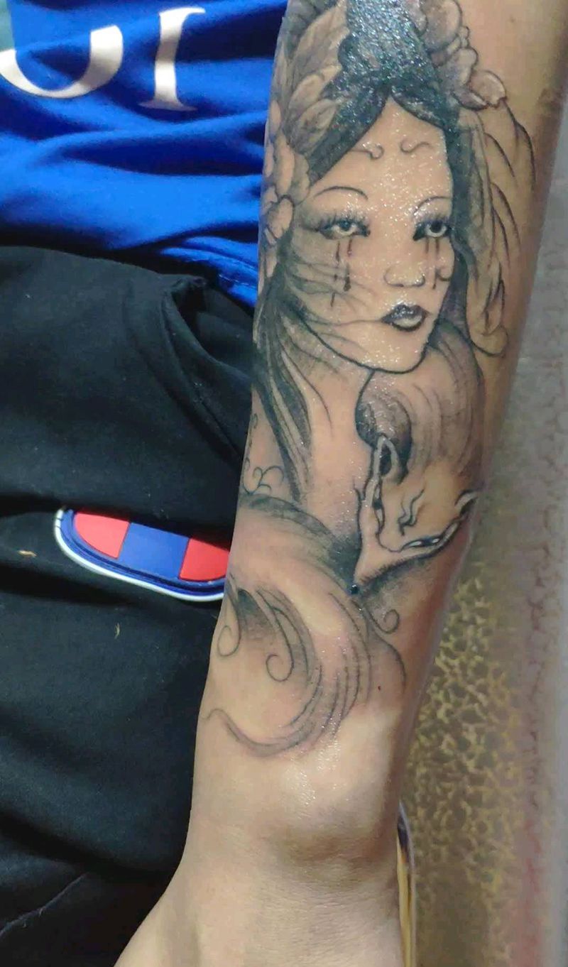 当前位置: 首页 >浙江省温州市纹身店-华来刺青纹身图案>艺妓纹身图片_手臂新传统纹身图案