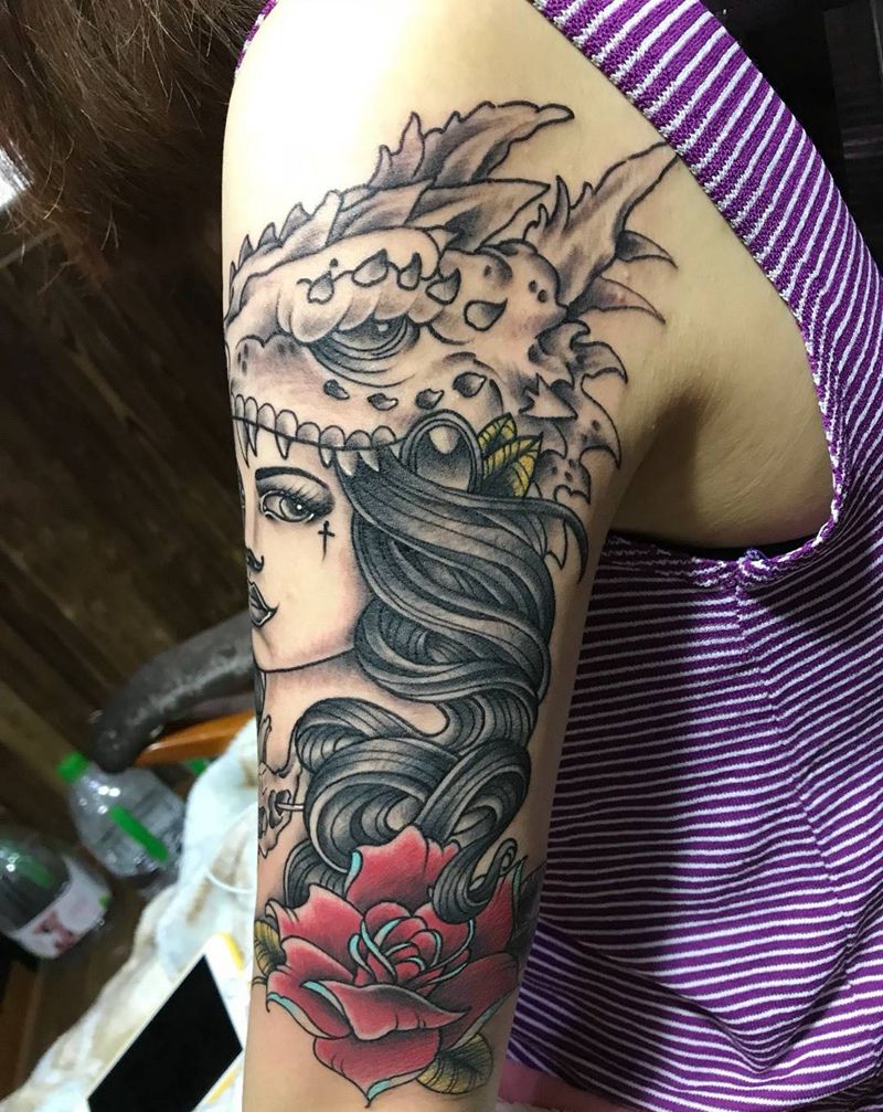 • 女性大花胸纹身_43张霸气漂亮的女性大花胸纹身图案作品