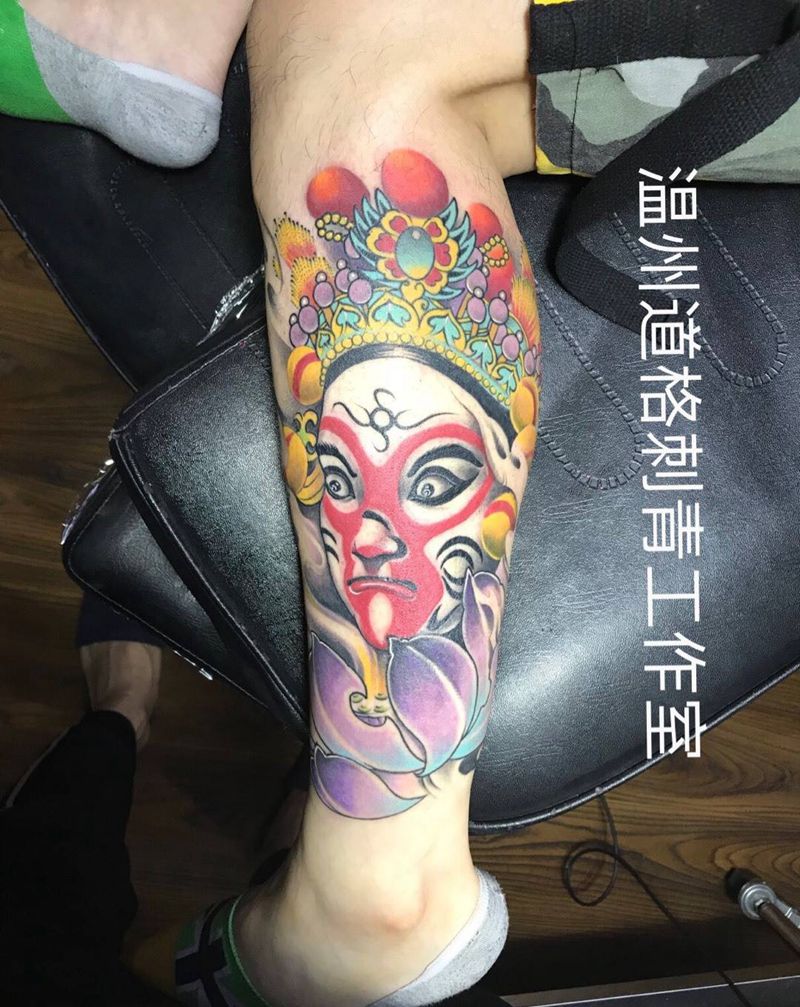 • T网红王老大花腿龙纹身图片_腿部新传统纹身图案
