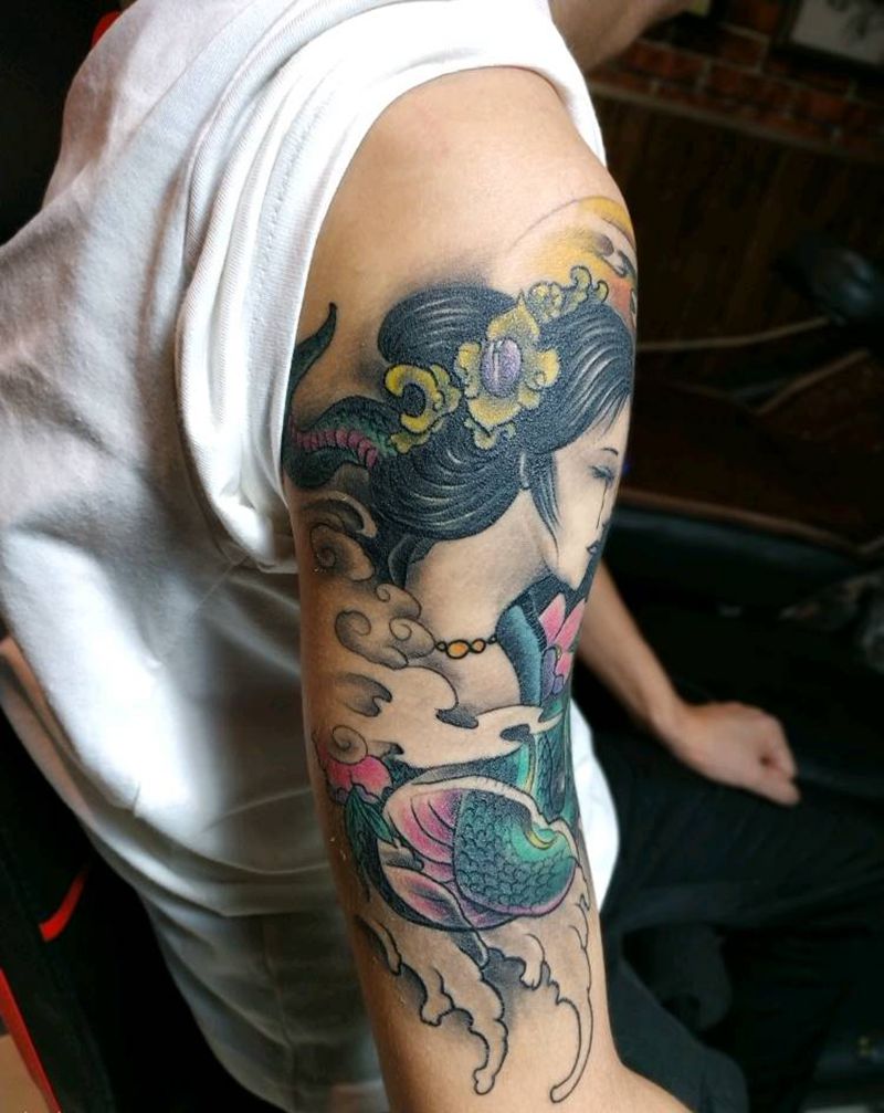 花臂艺妓纹身图片_手臂新传统纹身图案