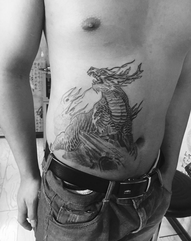• T网红王老大花腿龙纹身图片_腿部新传统纹身图案