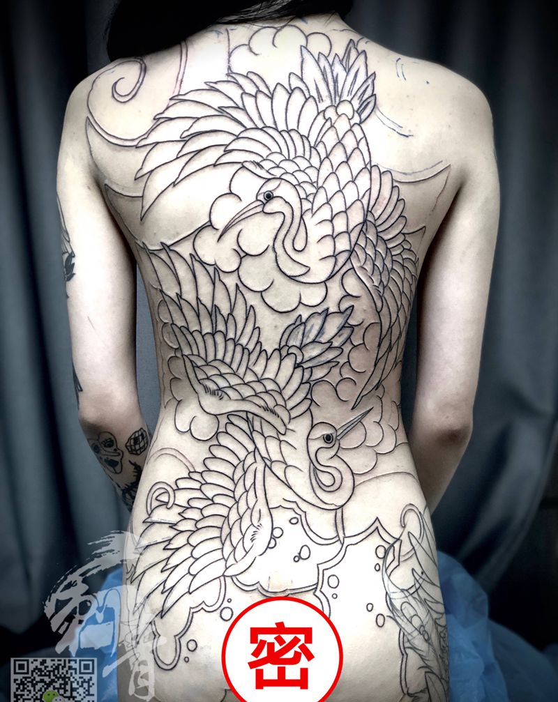 当前位置: 首页 >浙江省温州市纹身店-G刺青纹身图案>鹤各线。下次扩线做细节纹身图片_背部腰部老传统新传统纹身图案