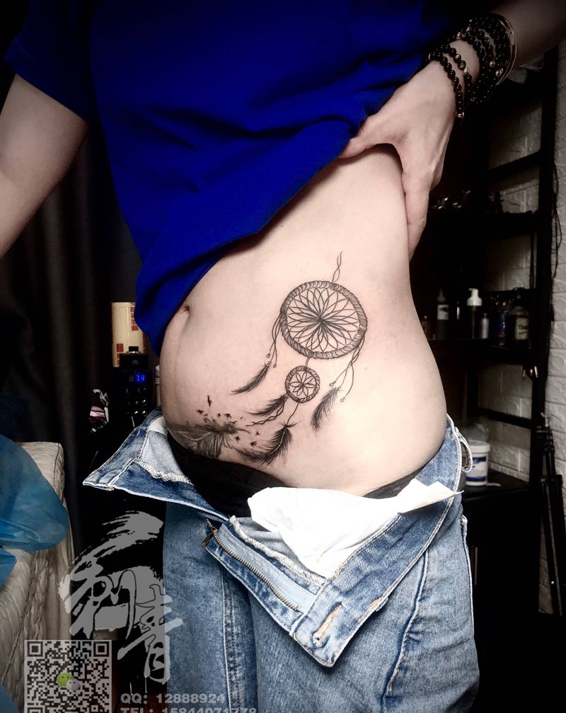 • T关于私处得爱!纹身图片_成品腹部清新字符图腾纹身图案