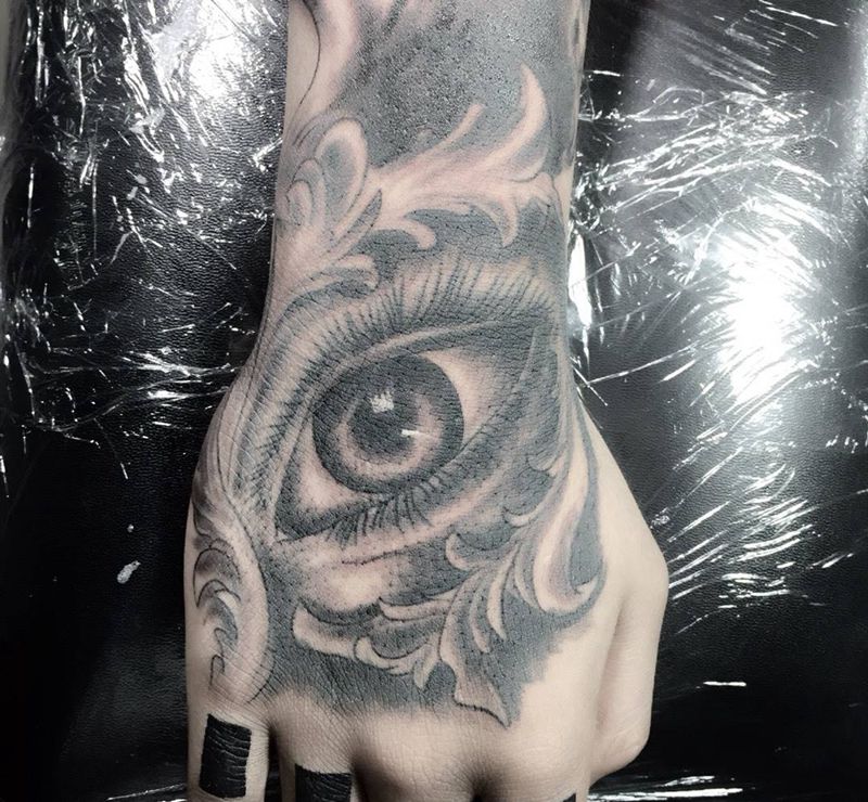• 手背潮流时尚的玫瑰花眼睛纹身图案