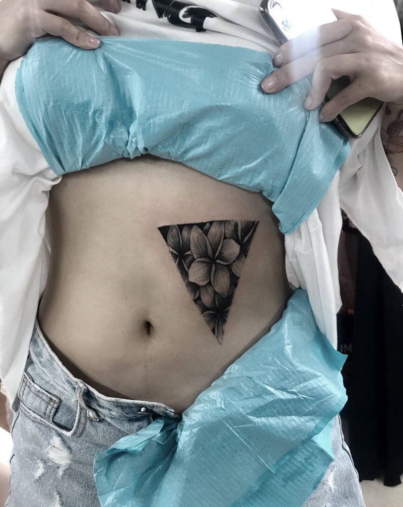 素花遮盖纹身图片_腹部点刺几何纹身图案