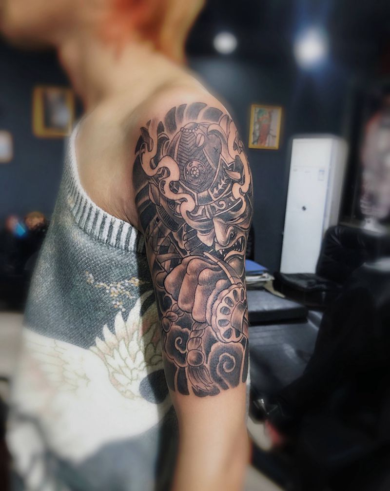 鬼武士纹身图片_手臂新传统鬼武士纹身图案