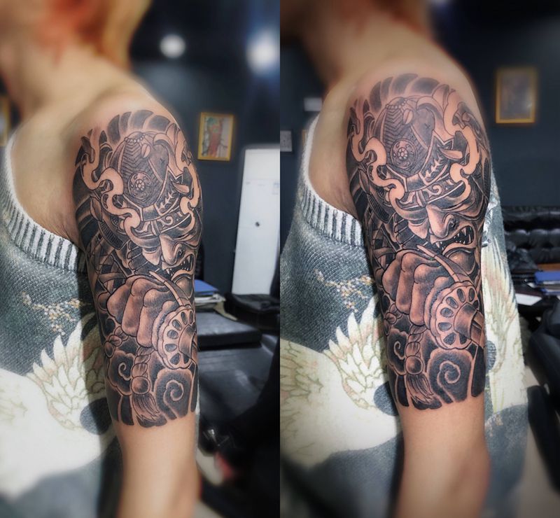 鬼武士纹身图片_手臂新传统鬼武士纹身图案