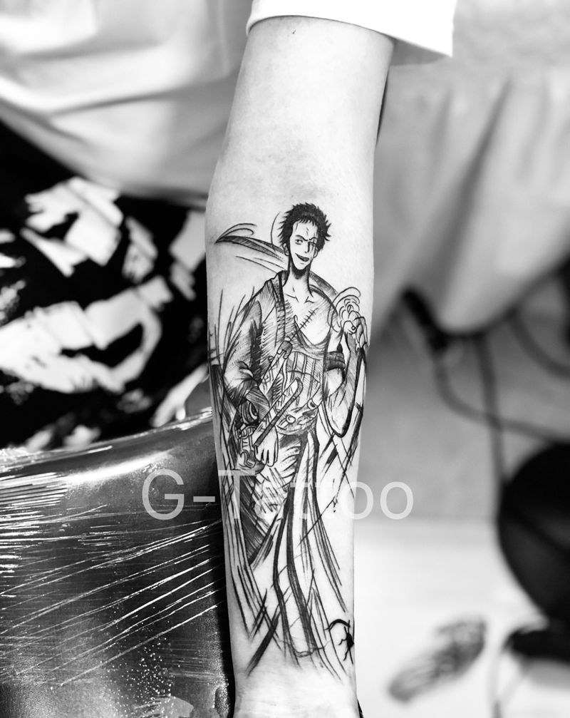 当前位置: 首页 >浙江省温州市纹身店-G刺青纹身图案>海贼王系列纹身图片_手臂点刺几何纹身图案