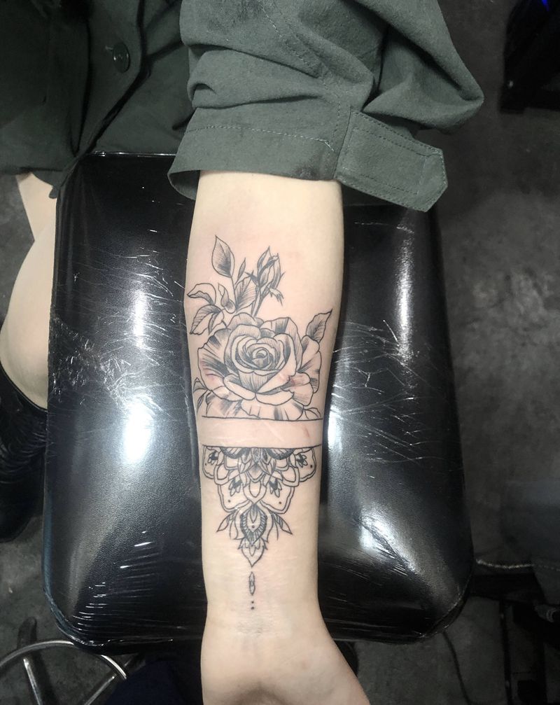素花遮盖纹身图片_手部手臂点刺纹身图案