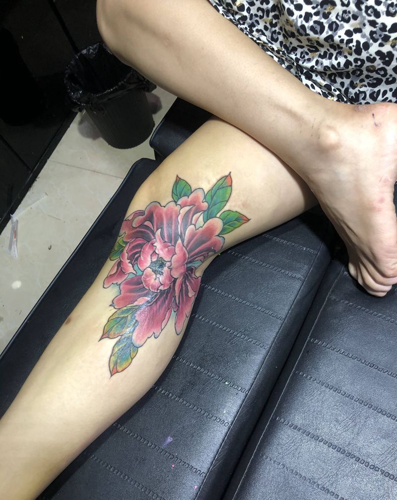 遮盖纹身图片_脚部新传统牡丹纹身图案