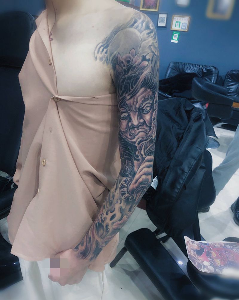 当前位置: 首页 >浙江省温州市纹身店-芸艺纹身纹身图案>修改上色纹身图片_新传统花臂纹身图案