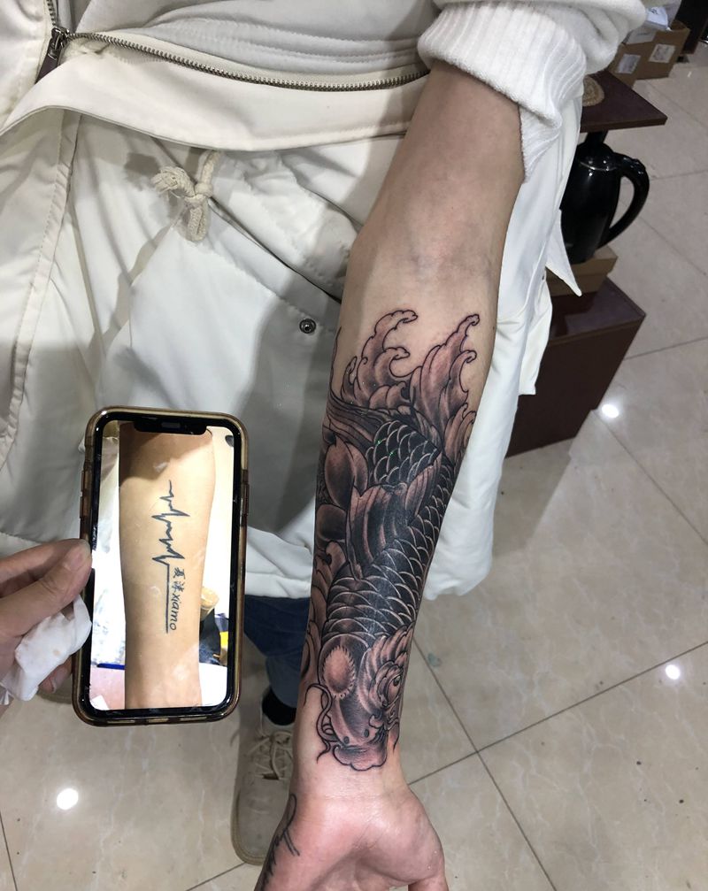 当前位置: 首页 >浙江省温州市纹身店-芸艺纹身纹身图案>遮盖纹身图片_新传统鲤鱼纹身图案