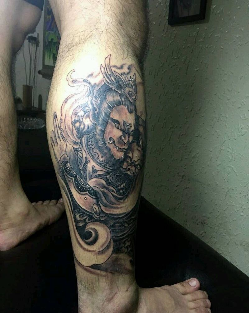 当前位置: 首页 >浙江省温州市纹身店-芸艺纹身纹身图案>小腿悟空纹身图片