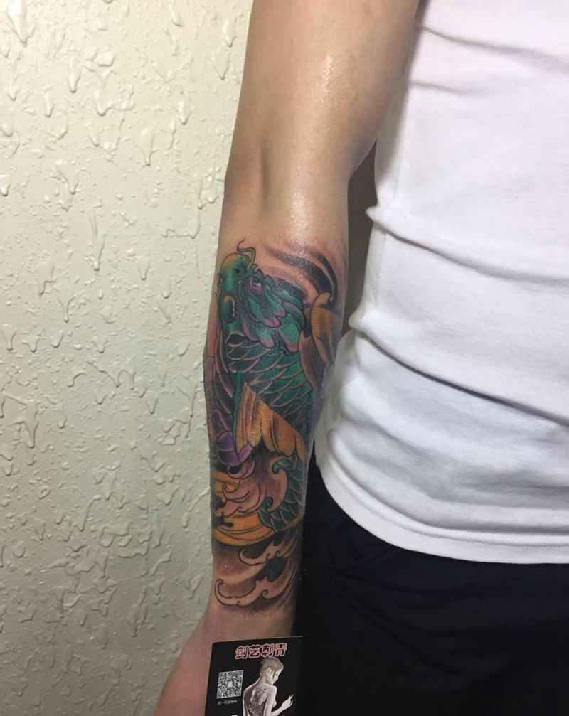 当前位置: 首页 >浙江省温州市纹身店-芸艺纹身纹身图案>重彩鲤鱼遮盖疤痕纹身图片