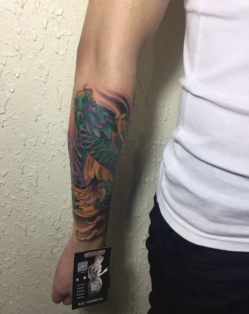 当前位置: 首页 >浙江省温州市纹身店-芸艺纹身纹身图案>重彩鲤鱼遮盖疤痕纹身图片