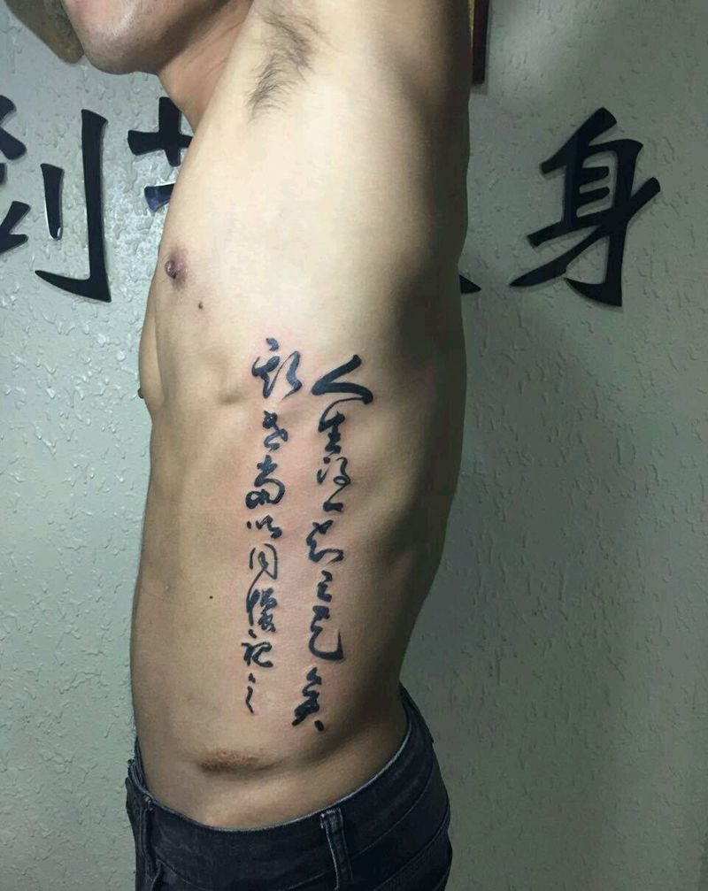 当前位置: 首页 >浙江省温州市纹身店-芸艺纹身纹身图案>侧腰书法纹身图片