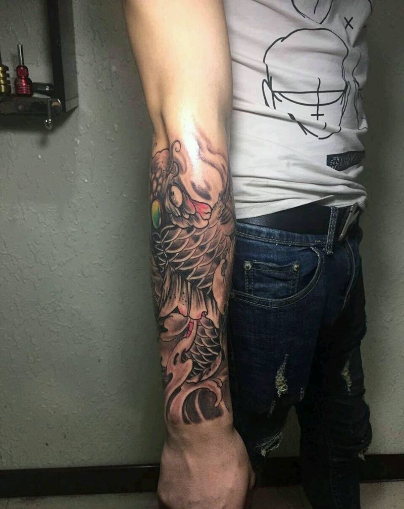当前位置: 首页 >浙江省温州市纹身店-芸艺纹身纹身图案>小臂锦鲤纹身图片